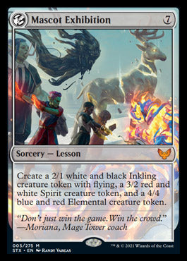 Create a 2/1 white and black Inkling creature token with flying, a 3/2 red and white Spirit creature token, and a 4/4 blue and red Elemental creature token.