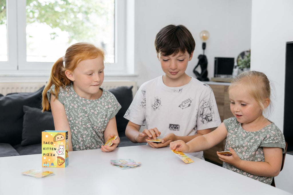 Just like the adult's version Taco Cat Goat Cheese Pizza, be the first to get rid of all your cards to win the game.