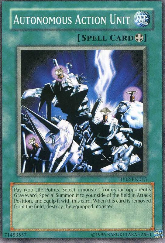 Pay 1500 Life Points. Select 1 Monster Card from your opponent's Graveyard. Special Summon it to your side of the field in Attack Position, and equip it with this card. When this card is removed from the field, destroy the equipped monster.