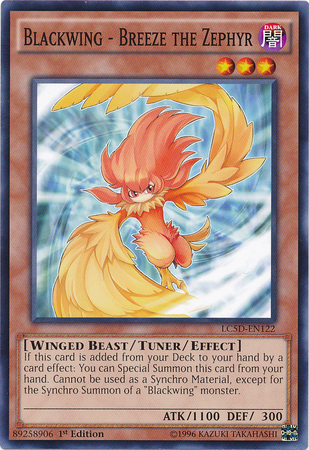 If this card is added from your Deck to your hand by a card effect: You can Special Summon this card from your hand. Cannot be used as a Synchro Material, except for the Synchro Summon of a "Blackwing" monster.